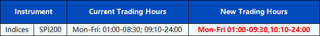 Please note the above data are subject to changes. Please refer to MT4/MT5 for details.